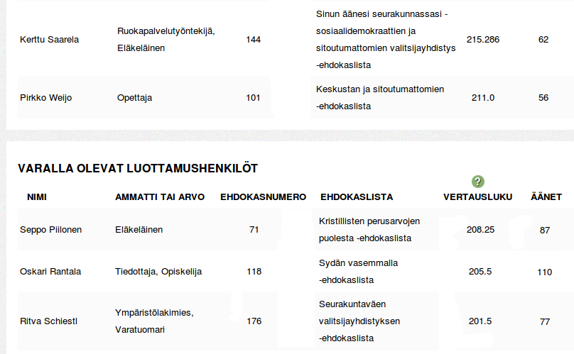 Kaikesta huolimatta sain 15. eniten ääniä Jyväskylän seurakunnassa. Suuri kiitos jokaiselle yli sadasta äänestäjästä — samoin kuin kaikille niille, jotka suosittelivat äänestämistäni muillekin (teitäkin oli ainakin muutamia)! Yritän olla luottamuksenne arvoinen ja edistää parhaani mukaan asioita, joista puhuin ennen vaaleja ja joiden takia minua (todennäköisesti) äänestitte.